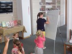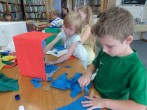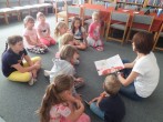 Tego dnia wspominaliśmy swoje wakacyjne podróże, rozmawialiśmy o sprawdzonych sposobach na urozmaicenie długiej drogi pociągiem czy samochodem. Prowadząca zajęcia bibliotekarka przeczytała dzieciom o perypetiach, jakie potrafią przydarzyć się w czasie podróży. Książka Zofii Staneckiej „Basia i podróże” była doskonałym wstępem do wykonania mapy, ilustrującej drogę, którą pokonują dzieci idąc do biblioteki. Wspólnie zastanawialiśmy się, jakie ważne miejsca mijamy i w jaki sposób zaznaczyć je na naszych mapkach. Była to niezwykle ciekawa i rozwijająca forma poznawania swojej okolicy. Następnie, posługując się techniką origami płaskiego, dzieci wykonały oryginalne prace plastyczne.